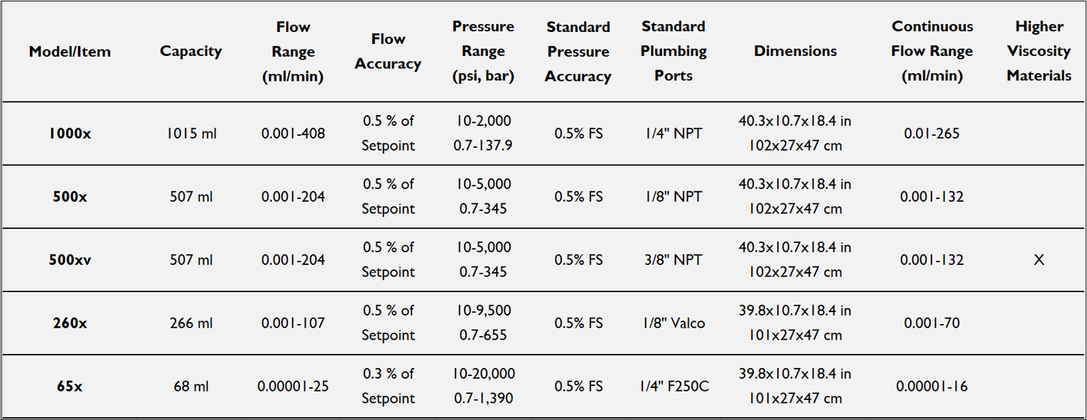 高壓針筒式幫浦提供精確,可靠的計量,涵蓋於各種應用範圍,持續的創新使我們能滿足您的任何幫浦需求。 可處理從液化氣體到焦油的粘度,流速控制從 0.0001 – 400 ml /min範圍,壓力可達30000psi (2,068 Bar)。