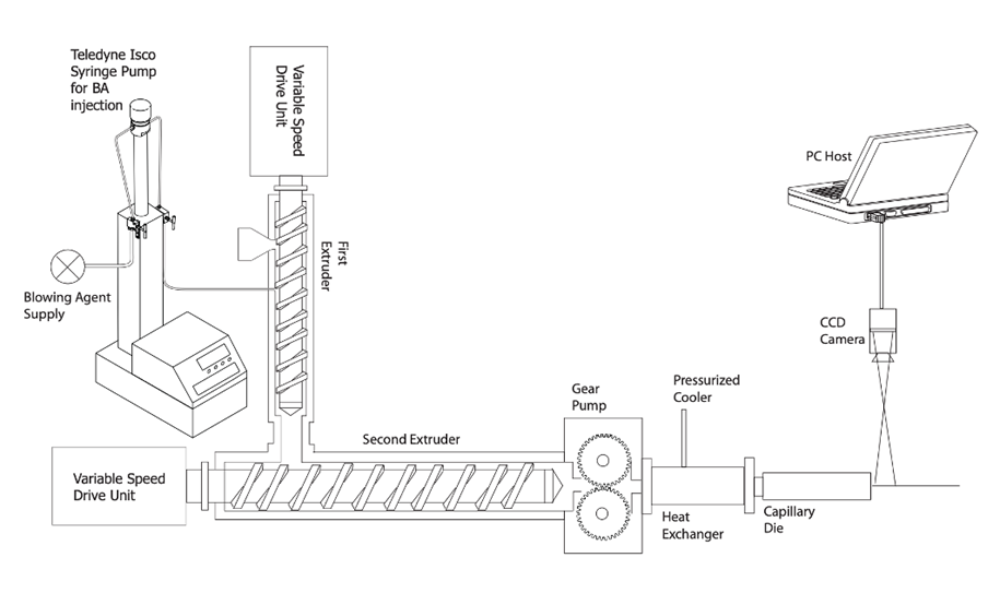 The solubility of physical blowing agents plays a key role in the manufacturing of plastic foams. This solu- bility study aims to investigate the amount of gas that can dissolve in polymer melt at a given temperature and pressure.