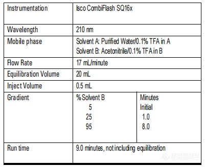以下是一個通用的方法,用於在可重複使用的反相 RediSep® C18 柱上將勝肽混合物分離成餾分。