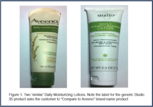在本應用說明中,比較了三「對」不同的化妝水。 每對都包含來自知名品牌製造商 (Aveeno*、Jergens* 和 GoldBond*) 的產品及其建議的更便宜的通用等效產品 (由 Walgreens* 製造並以 Studio 35* 標籤銷售) —— 例如:Aveeno Active Naturals 日常保濕乳液和 Walgreen 的 Studio 35 日常保濕乳液 (見圖 1)。