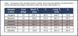 | Using NMR relaxation to compare a variety of brand-name and generic cosmetic lotions