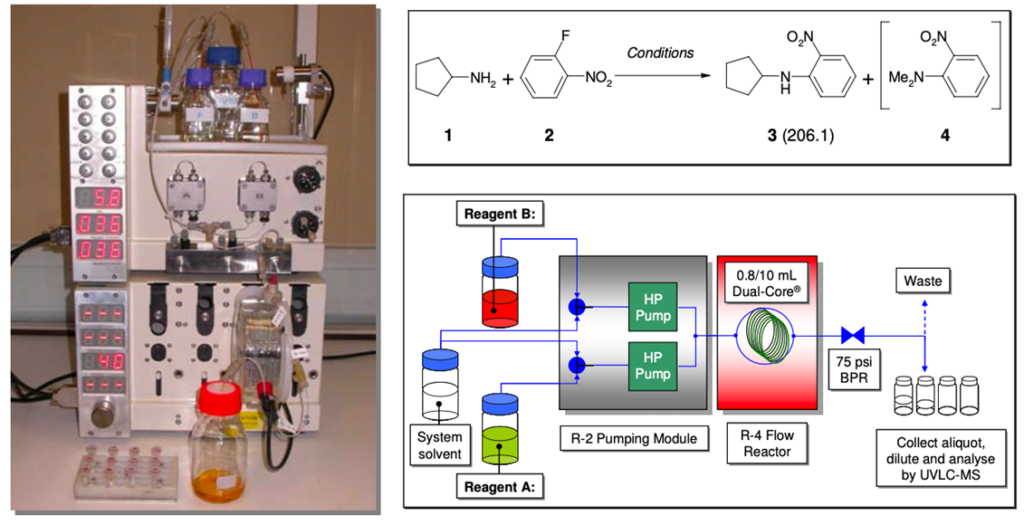 This Application Note illustrates, using an SₙAr reaction as a simple example, how a continuous flow tubing reactor containing a dual core can be used for reaction profiling, using the smaller capacity reactor to minimise sample wastage, to obtain optimal reaction conditions that may be directly scaled-up in the larger reactor.