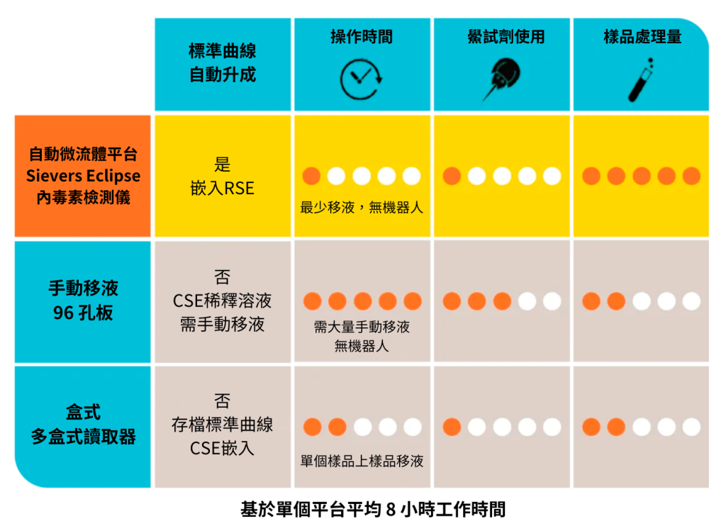 Sievers® Eclipse 細菌內毒素檢測儀是一種在降低鱟試劑使用量同時又滿足合規性上具有顯著優勢的解決方案。 Eclipse 可將鱟試劑的使用降低 90%,同時滿足所有全球製藥法規要求。與傳統的鱟試劑方法如 96 孔板和凝膠法相比,這是一個實質的進步。 Sievers Eclipse 設計了一種新型微孔板,利用向心力、計量室和微流體通道來提高鱟試劑和樣品的準確性並有助於快速分散。與傳統內毒素分析一樣,微流體系統能夠使您進行相同的生物化學分析,但實際操作量最小,一致性更高,試劑消耗量大大降低。透過減少高達 90% 的鱟試劑的使用,Eclipse 減少了對地球上最靈敏、無與倫比的天然內毒素檢測試劑的需求。 Eclipse 採用 FDA 許可的市售鱟試劑,並且符合全球藥典法規,包括但不限於美國藥典 USP <85>、中國藥典 ChP 四部 <1143>、歐洲藥典 EP 2.6.14 和日本藥典 JP 4.01 中規定的所有要求。這能夠使用戶意識到需要保護當今寶貴的自然資源,同時仍必須符合藥物和醫療器材製造商必須滿足的嚴格的分析和監管要求。