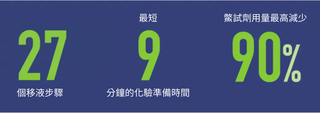 最高減少 85% 的準備時間,可在最短 9 分鐘內完成化驗準備