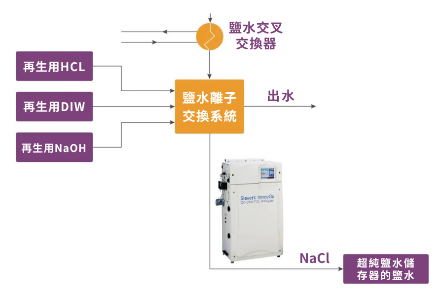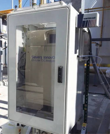 Sievers 分析儀為現場測試提供了一套 InnovOx 在線型演示儀器。 InnovOx 在線型 TOC 分析儀能夠連續、精確地測量水中的有機碳,測量濃度範圍廣,從鹽水到蒸氣冷凝水。使用者安裝了InnovOx在線型分析儀,用於監測鹽水離子交換器和超純鹽水記憶體之間的鹽水。使用者得到了鹽水成分的連續數據,從而做出明智決策來保護膜系統。
