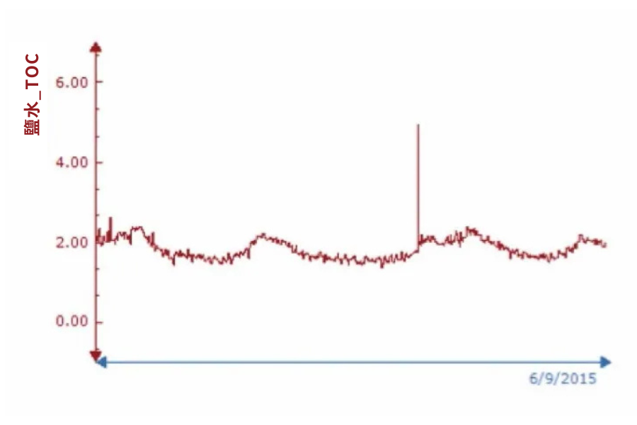 在監測氯鹼廠的鹽水供應時所得到的 TOC 測量數據