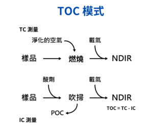圖1:催化燃燒式分析儀的 NPOC (Non-Purgeable Organic Carbon,不可吹除有機碳) 模式