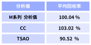本次研究使用的所有分析儀都在正確的操作模式下成功完成了對化合物的分析,但 Sievers M 系列分析儀是唯一在標準操作模式下並且在不用載氣的情況下有效檢測揮發性有機物的儀器。表1 列出了所有化合物和所有分析濃度的揮發性有機物的平均回收率。