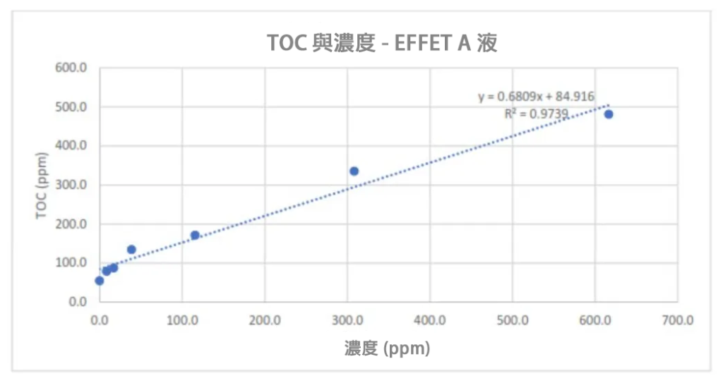圖 2b:不同加標濃度的 EFFET A 液的實測 TOC