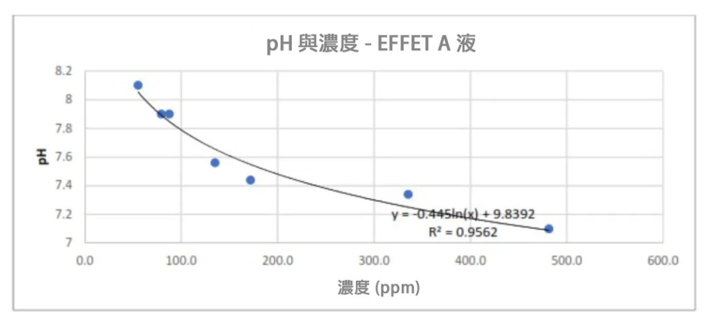 圖 5b:不同加標濃度的 EFFET A 液的實測 pH 值
