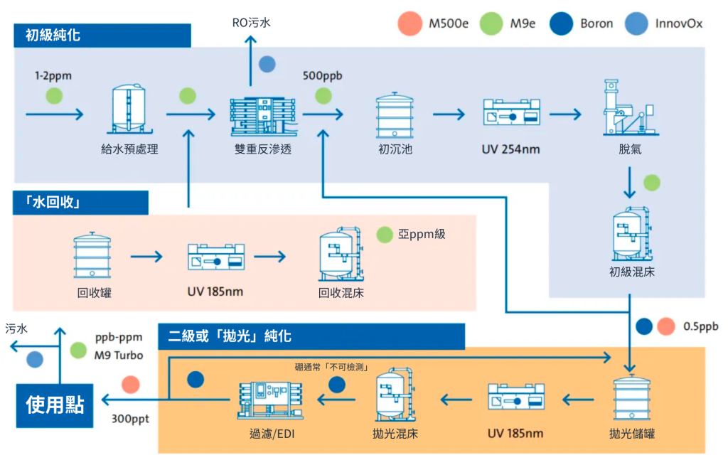 - 給水和高純度製程化學品中的低 ppm 級濃度